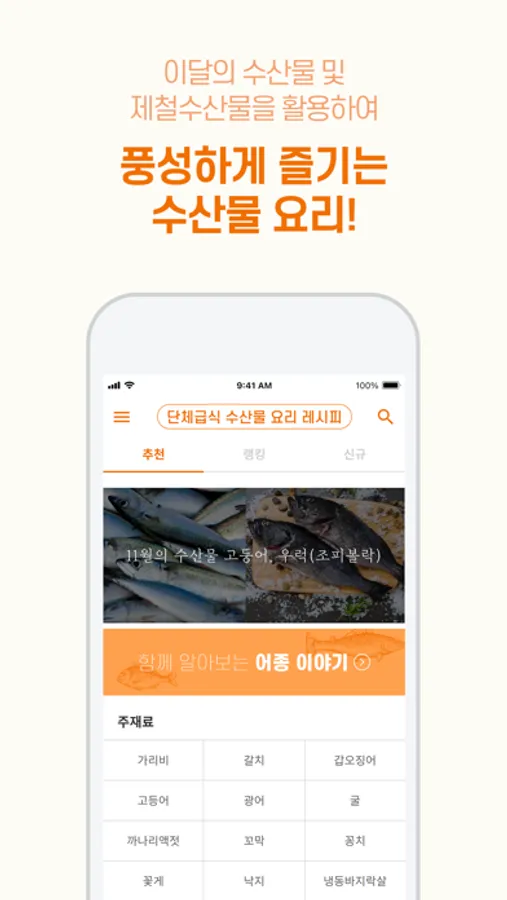 - 이달의 수산물 등 제철 수산물을 활용한 추천 레시피
