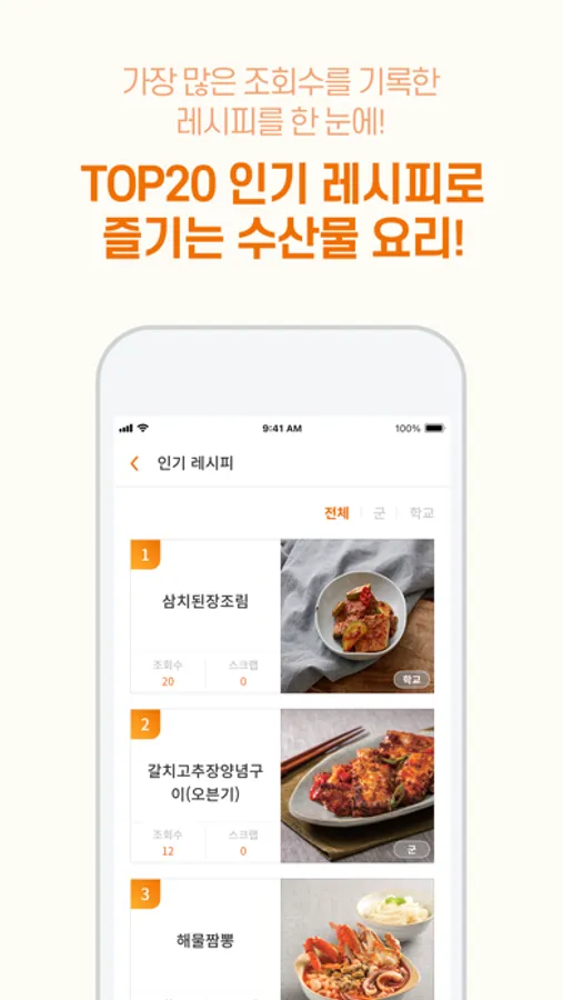 - 조회순 기준 인기 레시피 소개