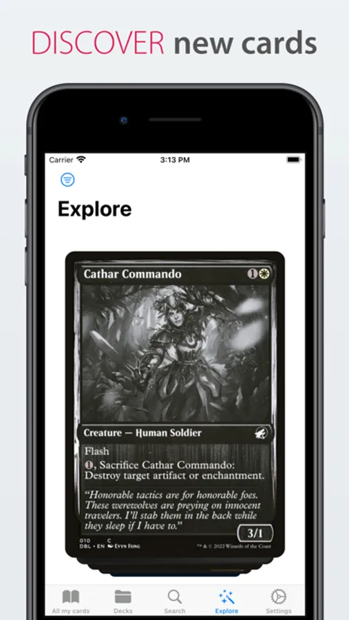 - Get to know more cards using the explore tab. It will show random cards to you.