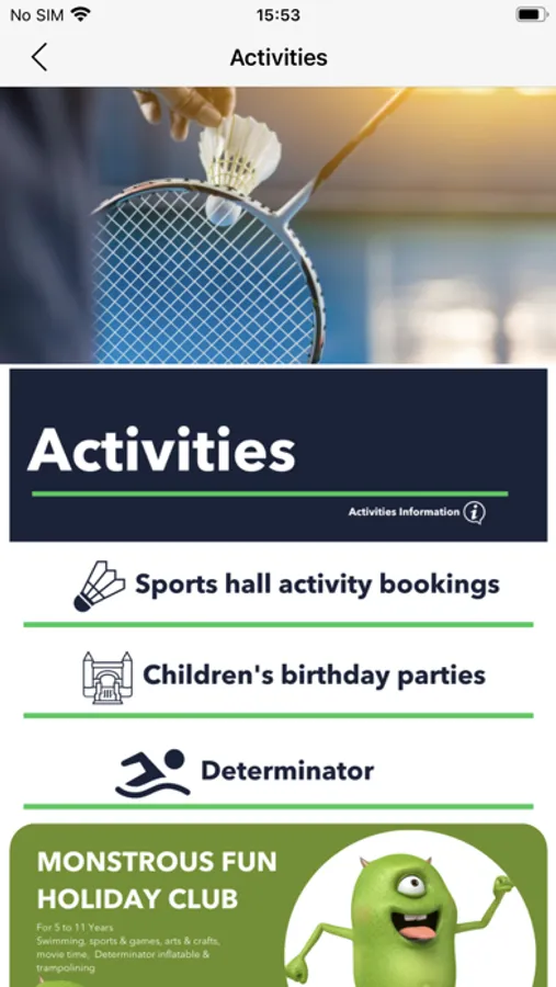 Direct access to all sports centre activities and classes – all on the move! Save your favourites to make rebooking easy and get push notifications to remind you!