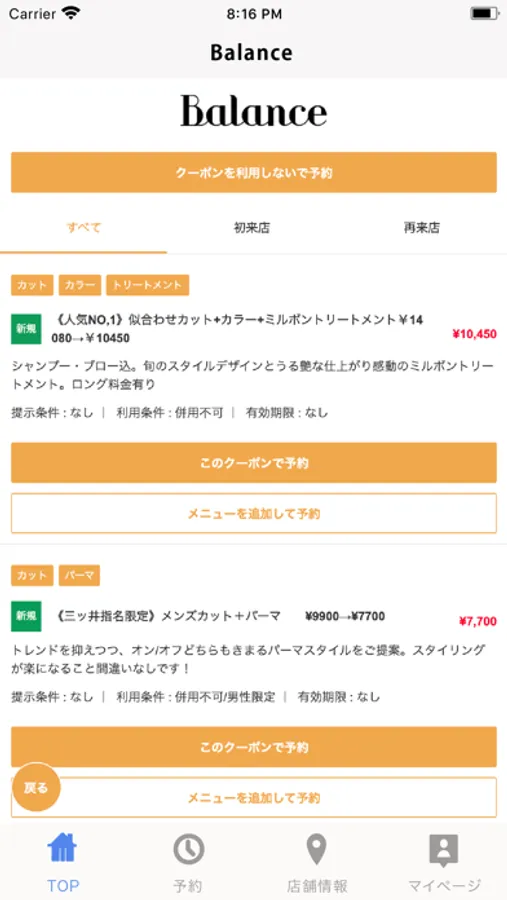 お得なクーポンが配信されます。ネット予約時にクーポン利用での予約も可能なので来店時もスムーズに施術頂けます。