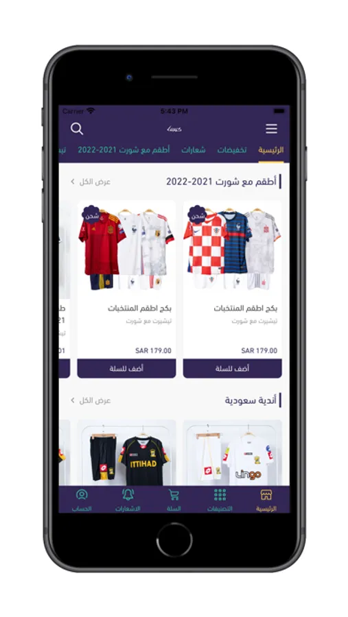 لان الكورة تجمعنا , نعيش فيها لحضات من الحماس , قررنا نكون جمبك وجبنالك كل تيشيرتات الأندية والمنتخبات في مكان واحد بالاضافة الى الأبوات والأحذية الرياضية وإكسسوارات عديدة للمنتجات الرياضية