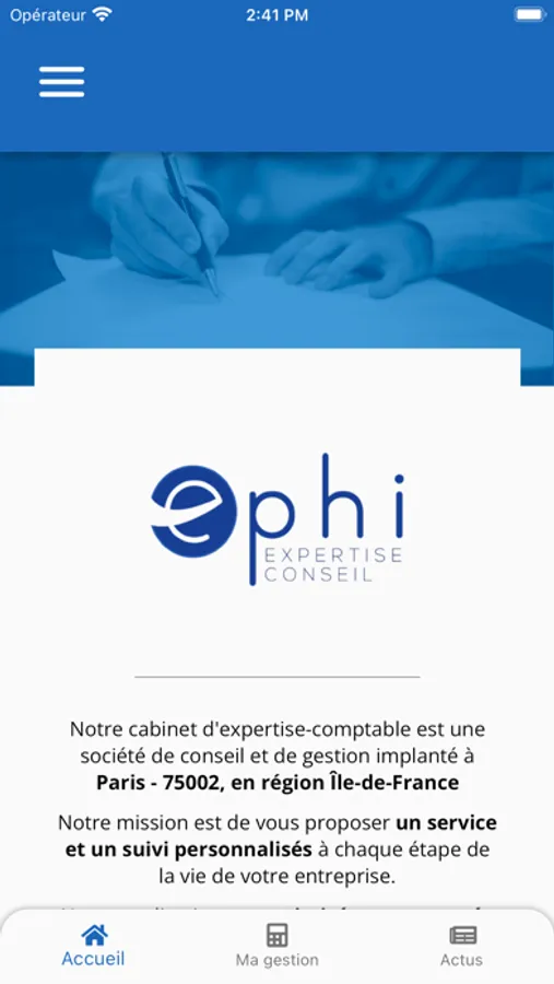 Notre cabinet EPHI expertise conseil situé à Paris intervient dans la comptabilité et la gestion d’entreprises de tous les secteurs d’activités. Nous exerçons aussi une activité de conseil dans toutes les étapes de la vie de votre entreprise.
