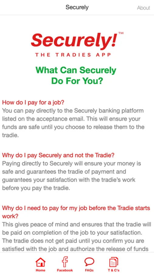 Securely is an easy-to-use app that tradies and sub-contractors could use to protect their payments with consumers. As a result, Securely! the Tradies app, now protects Tradies and their customers through a secure payment gateway portal.
