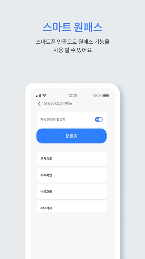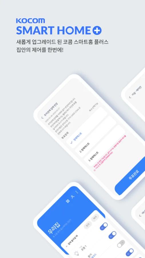 코콤 월패드와 연동하여 장치기 제어, 통화, 원패스를 이용한 공동현관 문 열림 등이 가능한 스마트홈 App입니다.