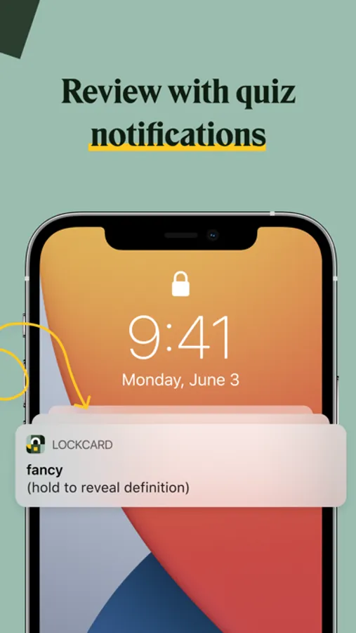 For everyone, you're going to love how Lockcard automatically sends your quiz notifications, which lets you review up to 100+ words a day.
