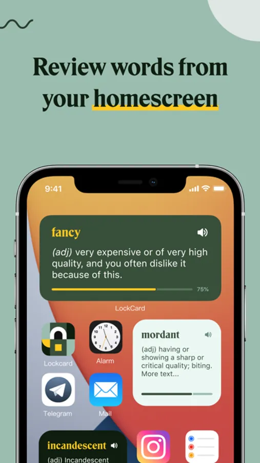 Lockcard is the best way to search and review new English vocabulary.