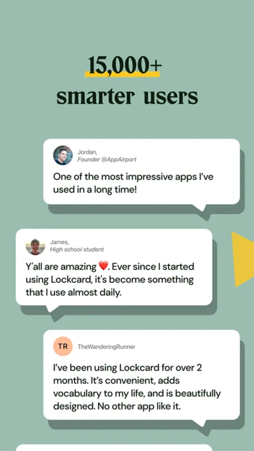 "Ya'll are amazing. Ever since I started using Lockcard, it's become something I use daily" — James (15y high school student)
