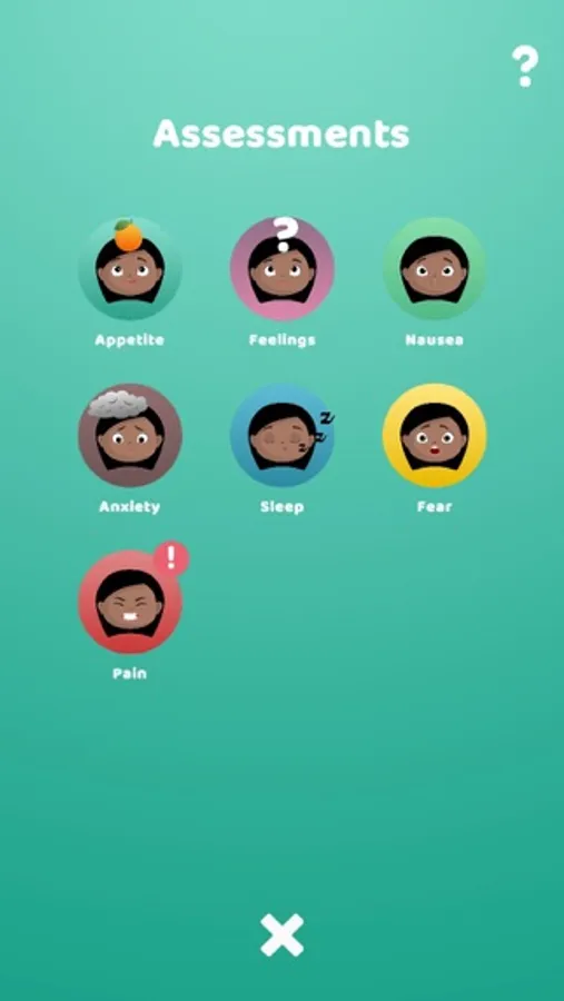 In the app the user can do assessments, these assessments are then sent to the hospital staff and researchers involved in the specific user's case. This can enable the staff to better balance the treatment for the kid. In the app, the user gets an avatar that is used to relate the questions in the assessment to the user. By answering assessments the user will unlock animals as a reward.