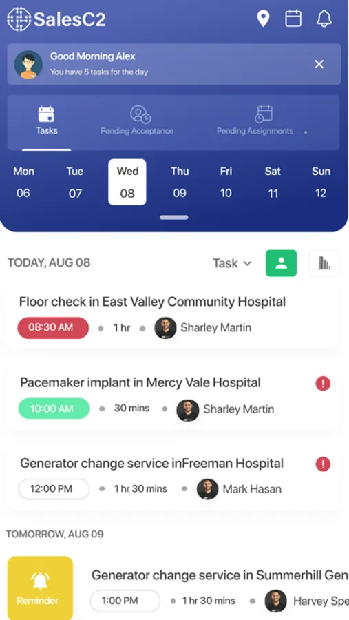 SalesC2 is a Team Management Platform designed and built for medical device sales teams. The software helps sales team by automating scheduling, facilitating team collaboration to support dynamic customer scheduling requirements, and providing data analytics of health system requirements