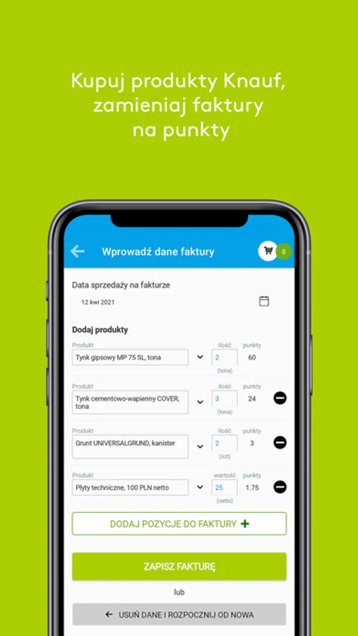 Kupując regularnie nasze najwyższej jakości materiały, gromadzisz punkty, które możesz możesz wymieniać je na atrakcyjne nagrody, jak: wyspecjalizowane narzędzia budowlane znanych i cenionych marek, urządzenia elektroniczne i AGD topowych marek oraz najwyższej jakości materiały budowlane marki Knauf.