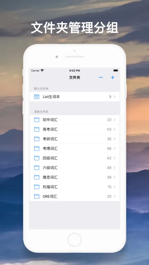 *「文件夹管理」:不同文件夹下,有多个组,每个组内有多个单词;