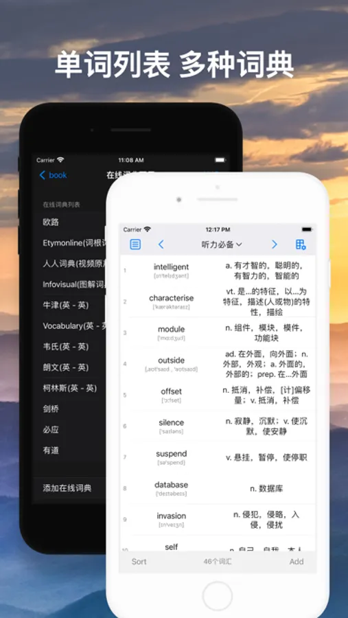 List生词本,支持快速查询,保存生词,通过单语模式、听写模式和拼词模式等,进行不断记忆和复习,为英语学习打好坚实的基础。