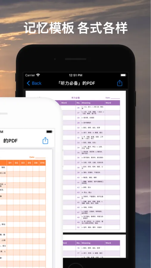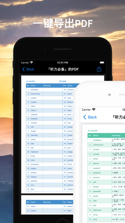 * 「PDF导出」:支持文件夹、组、单词表导出PDF文件。