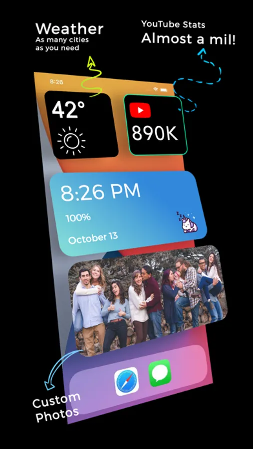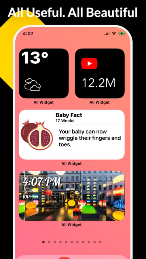 Transform your homescreen with thousands of widget combinations. Weather, YouTube stats, time, battery, date, aesthetic categories, it's all here. Yes even a baby pregnancy tracker. And enough searching for the perfect widget photo, you have them here.