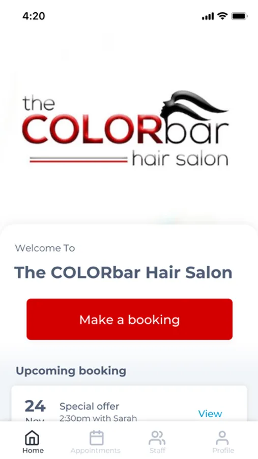 The The COLORbar Hair Salon app makes booking your appointments and managing your loyalty points even easier. You're just a few taps away from feeling good and looking great!