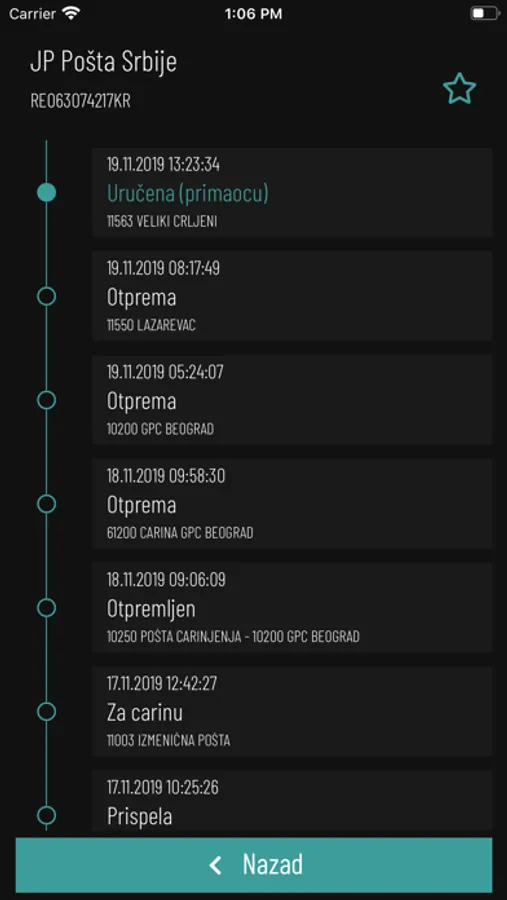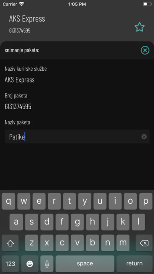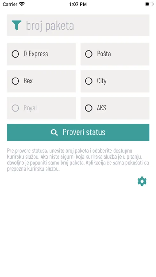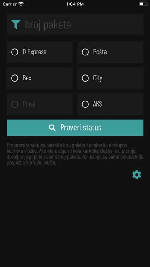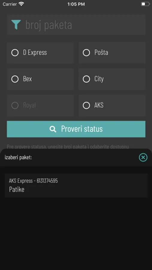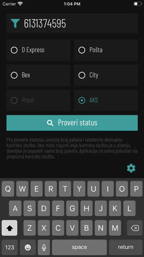 Brzo i jednostavno saznajte status poručenog paketa. Da bi ste saznali osnovne informacije, dovoljno je samo da unesete broj pošiljke i odaberete kurirsku službu. Ako niste sigurni koja kurirska služba je u pitanju, unesite broj pošiljke, a aplikacija će pokušati sama da prepozna kurira i prikaže informacije o paketu. Omogućeno je pamćenje broja paketa uz unos naziva, kako bi sledeći put mogli lakše da proverite status.