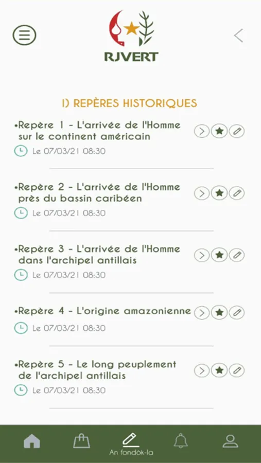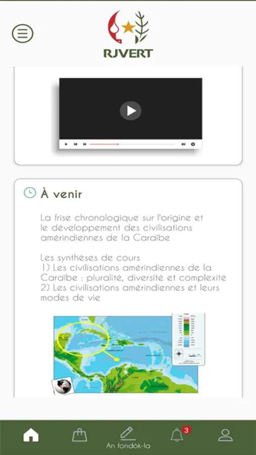 L’application RJVERT se veut dynamique avec des podcasts vidéo de quelques minutes rapidement consultables. Les cours s'inscrivent dans une thématique et répondent à une problématique. En premier lieu, des vidéos de Repères historiques avant d'approfondir avec des vidéos de Synthèses qui présentent des points de connaissance spécifiques.