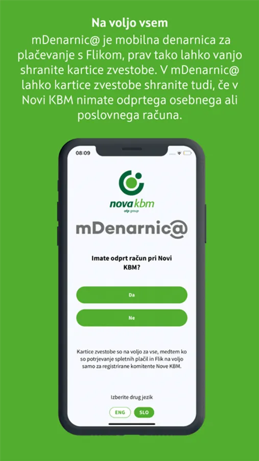 Začetek uporabe mDenarnic@ je hiter in preprost. Izvedete ga v le nekaj korakih brez obiska poslovalnice (če banka že ima potrebne podatke, to je vašo davčno številko in številko mobilnega telefona).
