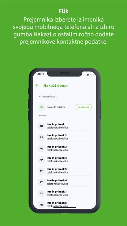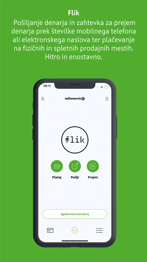 - Takojšnje nakazilo denarja ali pošiljanje zahtevka za takojšnji prejem denarja s pomočjo kontaktnega podatka (številke mobilnega telefona ali elektronskega naslova) prek Flik z neposredno bremenitvijo osebnega računa. Znesek je na računu prejemnika takoj, tudi ob vikendih in praznikih.