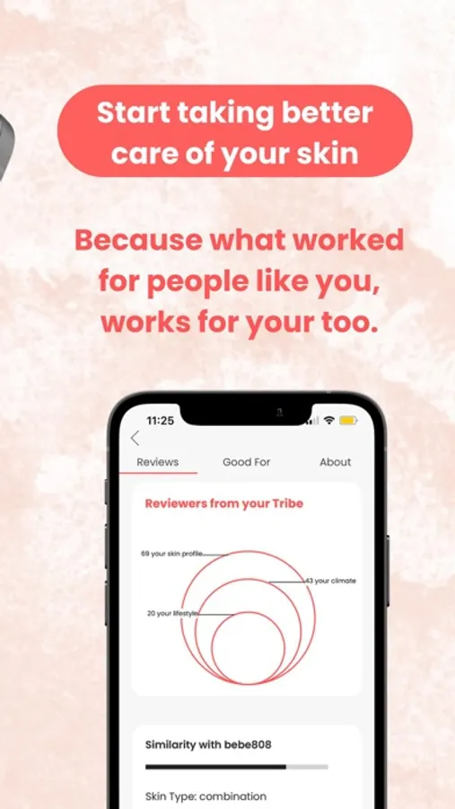 You cannot read all skincare reviews, so let us find the right ones! Our AI finds people that share your skincare needs based on skin condition, environmental factors and lifestyle, builds you a personalized routine!