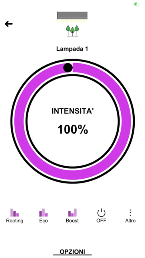 Una volta definita l'impostazione desiderata, la lampada la manterrà in memoria fino a nuovo comando, consentendo di gestire l'intensità luminosa per le diverse fasi di crescita dal tuo smartphone.