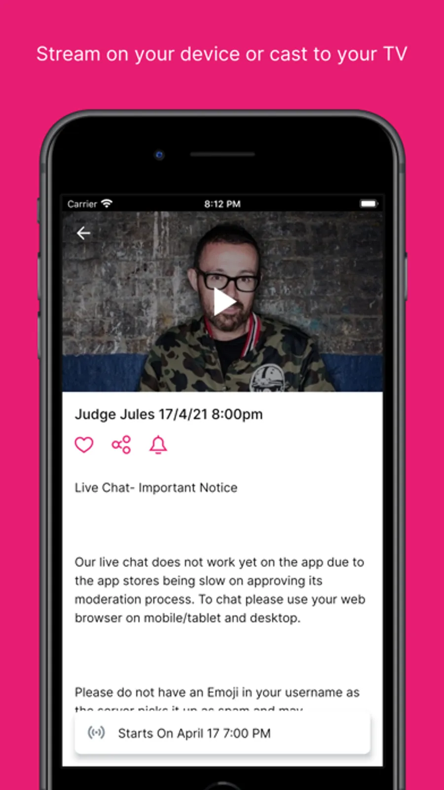This app is a chat and dance platform created by DJ's for the clubbers with daily live shows and thousands of hours of ever growing catch up content from across all genres of music…