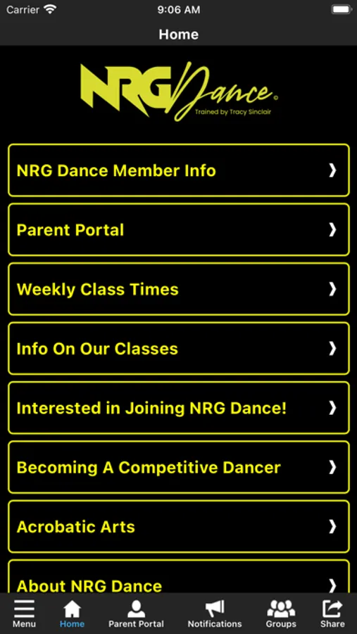The NRG Dance app is an easy-to-use, on-the-go way to access everything NRG Dance has to offer right from your smartphone.