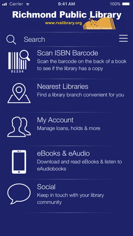 Access Richmond Public Library from your iPhone, iPad or iPod Touch. Manage your account, search the catalog, renew and reserve books.