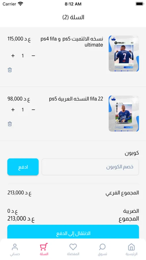 - إمكانية إضافة المنتجات للمفضلة وطلبها لاحقا.
