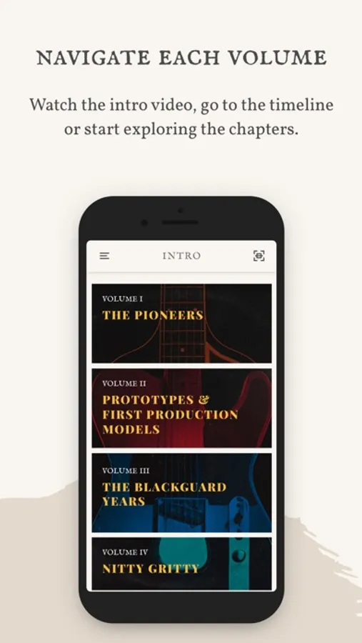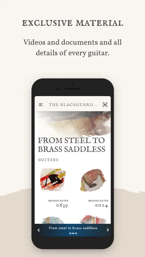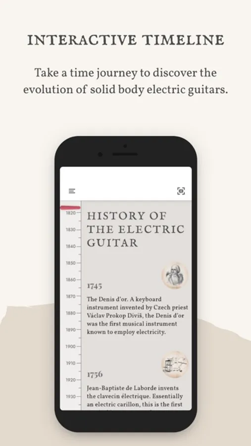 A unique interactive audio-visual experience with exclusive videos showing legendary guitarists playing these historical instruments!
