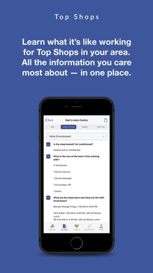 - Browse Top Shops - WrenchWay Top Shops are like resumes for shops. Shops share all the details technicians want to know before applying to a shop (i.e., compensation ranges for all levels, photos and videos of the service area and employees, and FAQs on work environment, career development, and hiring process, etc.).