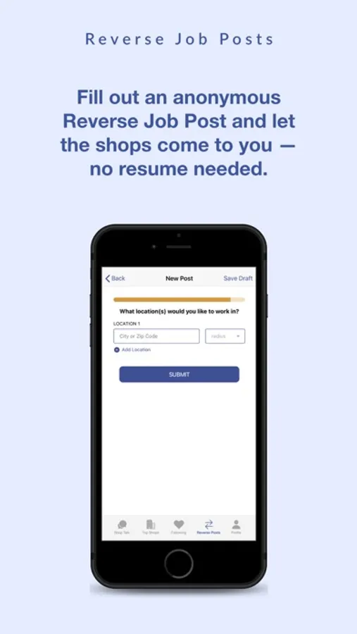 - Create Reverse Job Posts - Reverse Job Posts flip the traditional job board around. Technicians fill out a short questionnaire, and let shops reach out to them with job opportunities. The best part is the identities and contact information of technicians remains completely anonymous until they're ready to share.