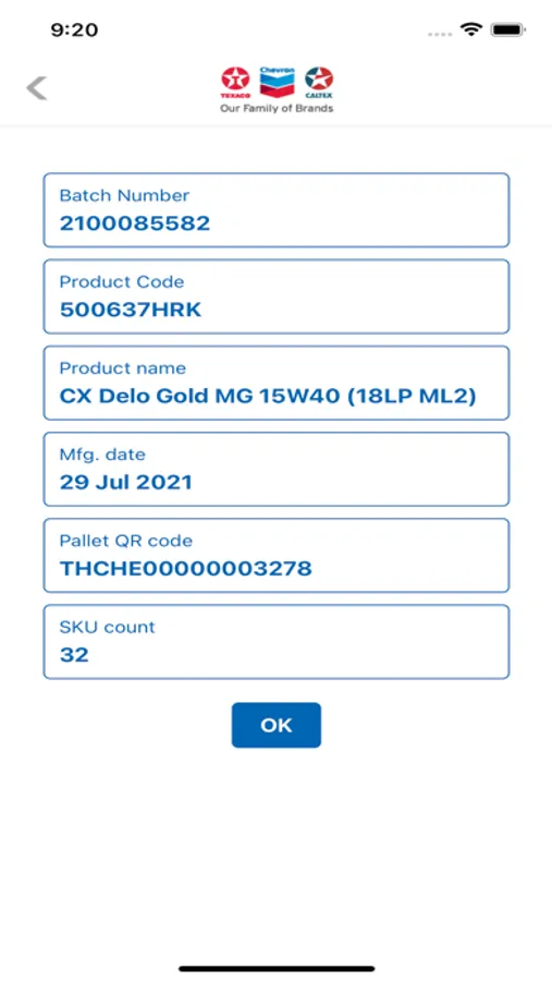 Chevron - Track & Trace Product batch traceability for packaged lubricants is to provide complete product batch and quality transparency through the lubricant value chain. It is critical to provide track and trace through all stages from plant through warehouse to distributor, OEM customer and end consumer to reinforce Chevron value proposition and brand perception