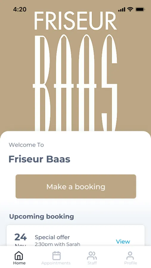 The Friseur Baas app makes booking your appointments and managing your loyalty points even easier. You're just a few taps away from feeling good and looking great!