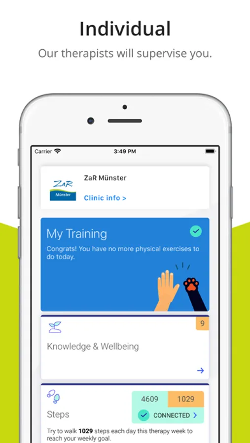 • The ZaR Münster App allows you to exercise correctly with the appropriate intensity