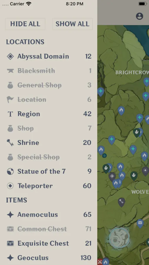 • Over 600 locations - Find all Anemoculus, Chests, Shrines & more!