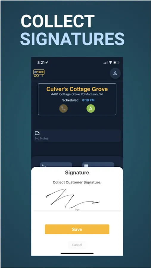 LoadTrekPhone provides LoadTrek drivers with up-to-date information about their routes, automatically tracks arrival and departure at stops, and lets drivers collect photos and signatures from customers upon arrival.