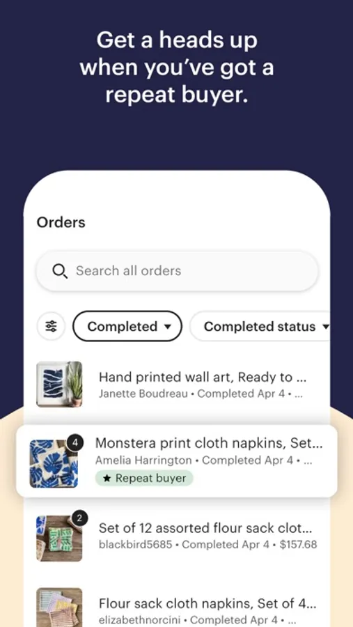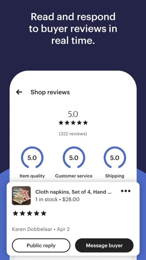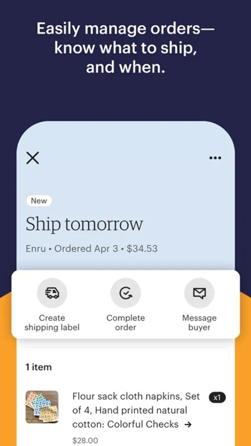 Etsy Seller is the newest way to manage your shop on the go. It’s got everything you need to easily respond to customers, create and edit listings, see your shop stats, and manage your orders.