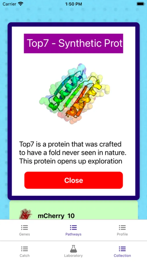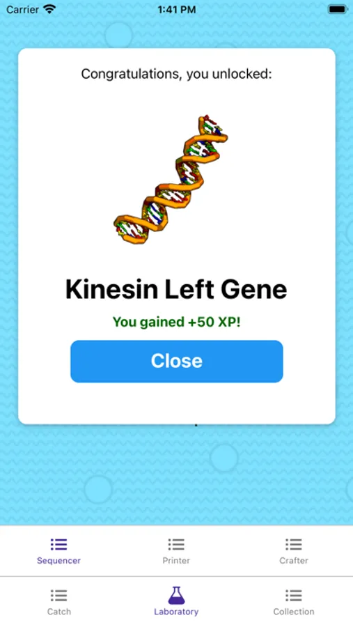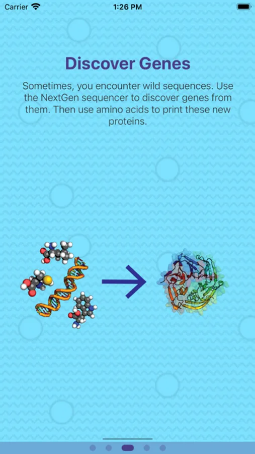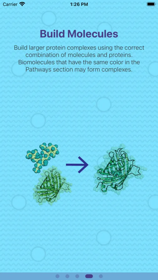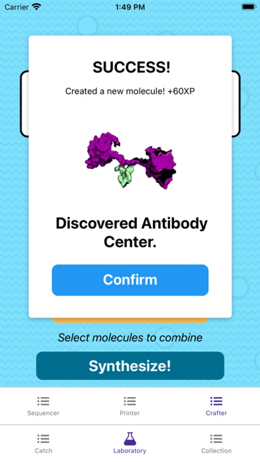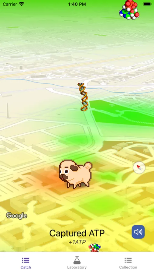 MoleculeGo is a location based app that gamifies the process of learning about molecular biology. In this game, the player collects amino acids, ATP, and DNA sequences, the molecular building blocks used to synthesize proteins. By capturing DNA sequences, the player discovers genes that encode for proteins. These genes provide the user with the necessary "recipe" to synthesize proteins in their own lab, using amino acids and ATP. These proteins can then be combined to construct even larger protein complexes. As the player progresses in the game, new molecules become available and information will become available about each molecule's basic function and how its structure is associated with its molecular role. Players can visit hotspots (schools, parks, hospitals, universities, etc.) to accelerate the discovery of new molecules. While molecules are discovered, players can learn how they are involved in disease, biomedical applications, research, and their function in the cell.