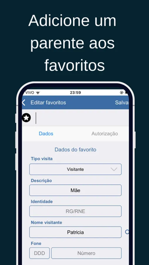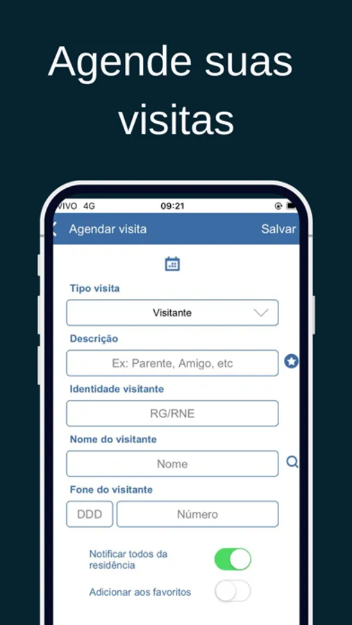 •Adicionar visitantes favoritos e selecionar quais dias eles terão acesso ao local. (Visitante com acesso liberado)