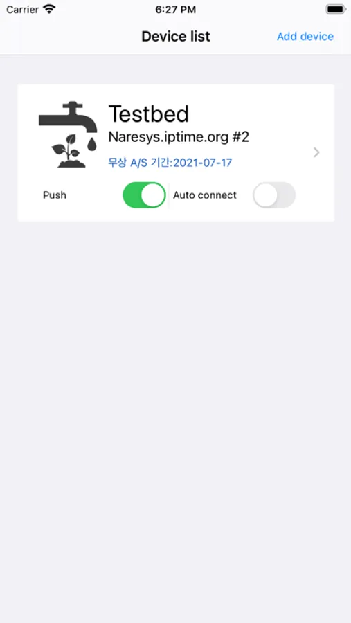 원격에서 아이폰을 통해 CCTV 영상을 확인하면서 비닐하우스의 개폐기를 제어하고 온·습도, CO2 등 각종 센서데이터를 확인할 수 있으며, 정전/고,저온/침입 등의 상황발생 시 경보를 알려주어 적절한 조치를 할 수 있도록 해 줍니다.