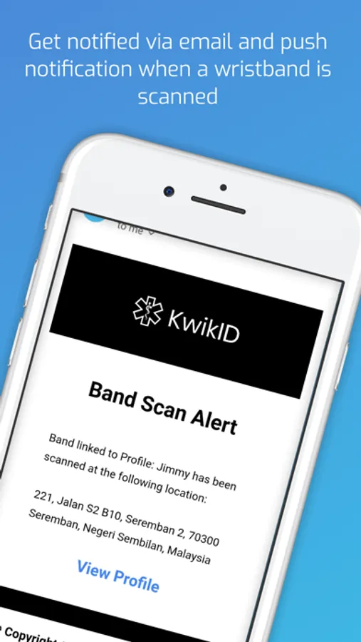 Manage your KwikID profiles via the KwikID app. KwikID allows you to store your entire medical profile such as emergency contacts, vital conditions, medical images, labs, allergies, medications, blood type, and many more. You can link 1 or more wristbands to your KwikID Profile—update your profile once and it's updated across all your wristbands.