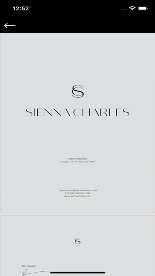 Mobile delivery for your travel itineraries from the premiere members only luxury travel and lifestyle company, Sienna Charles. Direct access for members always to the latest version of their trip. Itineraries are downloadable for offline use while traveling without internet connection, so you always have what you need on hand.
