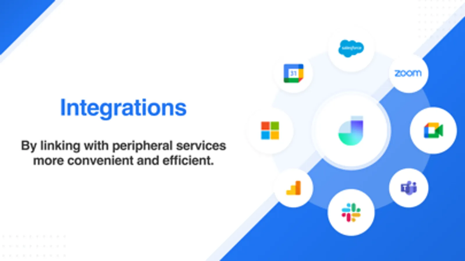 Seamless integration with web conferencing services such as Zoom, Google Meet, and Microsoft Team. When a booking is made, the web conference URL is automatically issued, automatically reflected in the calendar schedule, and notified to the other party via e-mail. Web meeting URLs can also be issued to appointments and tasks at the touch of a button from the application.