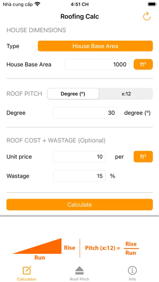 Calculating your roof is no longer an obstacle with our application. This application will automatically calculate the area and cost of your roof. Just enter the parameters of the roof size or the house area.