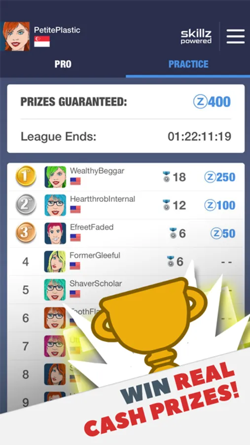 • Challenge people around the world with Skillz, a competition platform complete with leaderboards, trophies, physical or virtual prizes, and an amazing loyalty program that rewards you for playing!