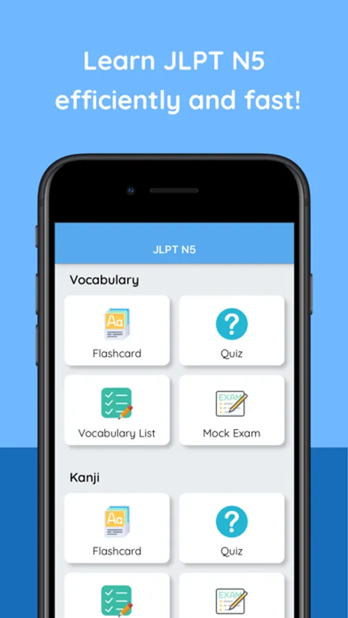 The app to help you learn and memorize Japanese vocabulary, kanji, and grammar patterns for JLPT N5 efficiently and fast!