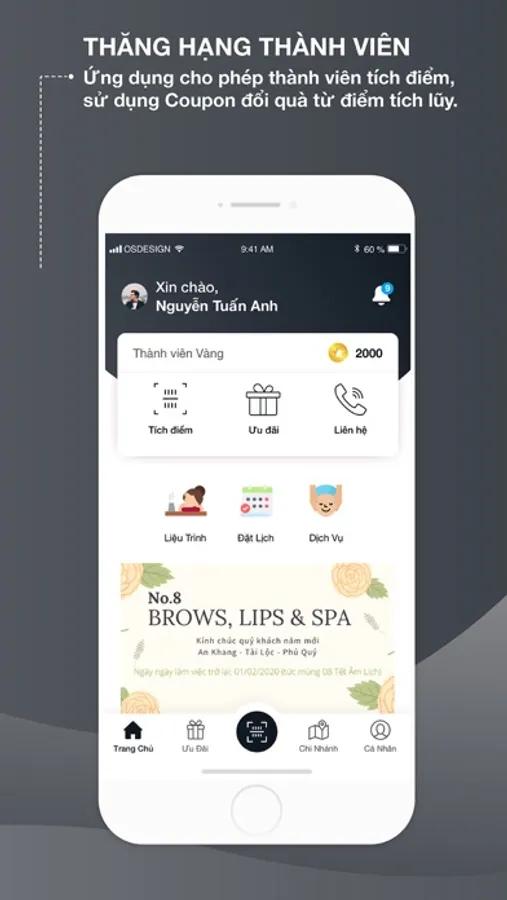 Thăng hạng thành viên, tích lũy điểm thưởng và quy đổi điểm để nhận những ưu đãi đặc biệt từ chuỗi No.8 Spa như giảm giá sản phẩm, dịch vụ, nhận quà tại cửa hàng.