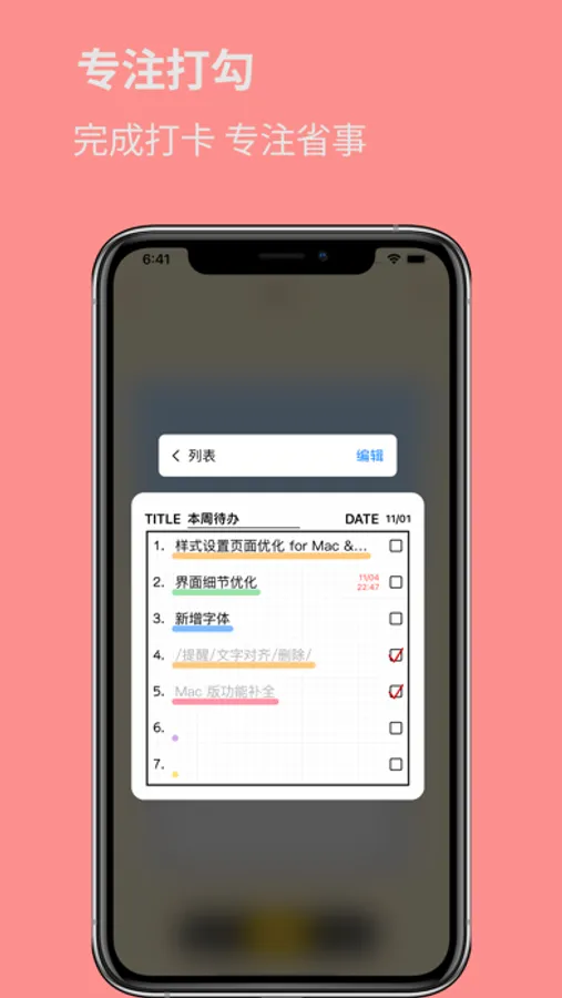 The list memo supports to-do / task / todo to be recorded item by item. After completion, tick and mark the status